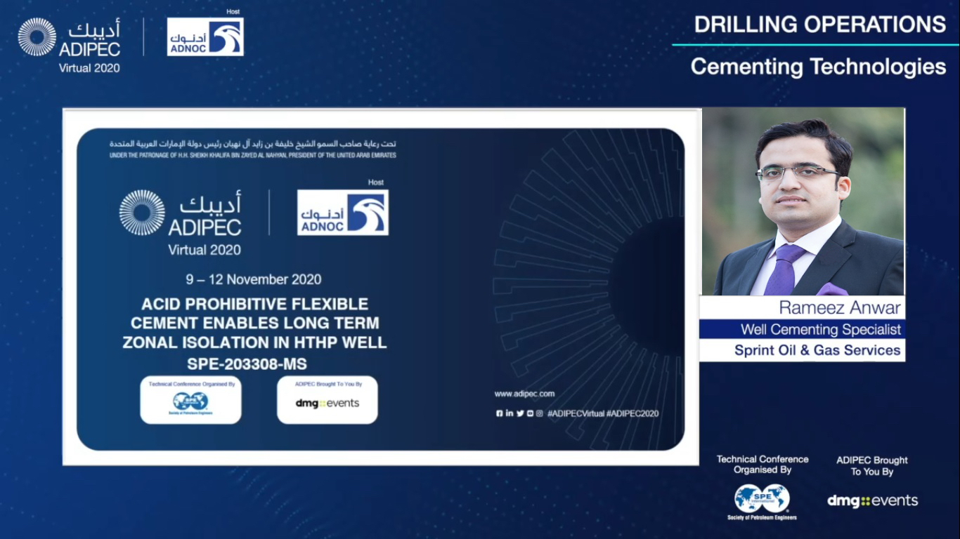 SPRINT participated in the ADIPEC 2020 Technical Conference and presented a successful case study of acid prohibitive flexible slurry placement in the “Cementing Technologies” session. The designed solution helped the operator to ensure the cement sheath integrity in an HTHP well which was subjected to the mechanical and thermal stresses in the post-slurry-placement phase.